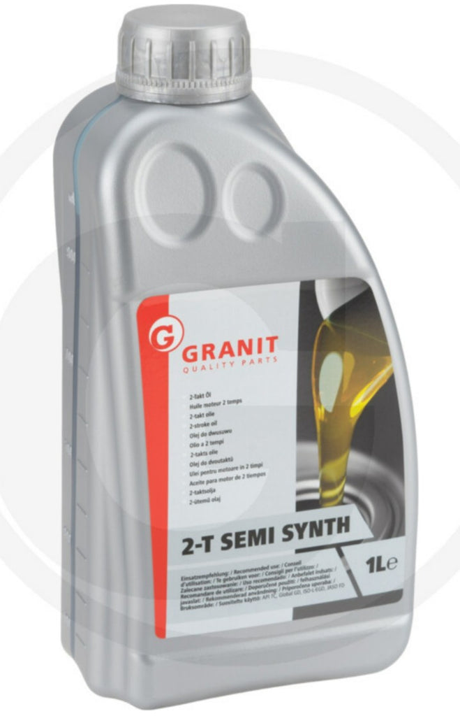 GRANIT Vollsynthetisches 2-Takt Öl Selbstmischend ist ein vollsynthetisches, raucharmes, Zweitakt-Motorenöl, mit optimaler Leistungsfähigkeit, um hohen Temperaturen und hohen Belastungen sicher zu beherrschen.